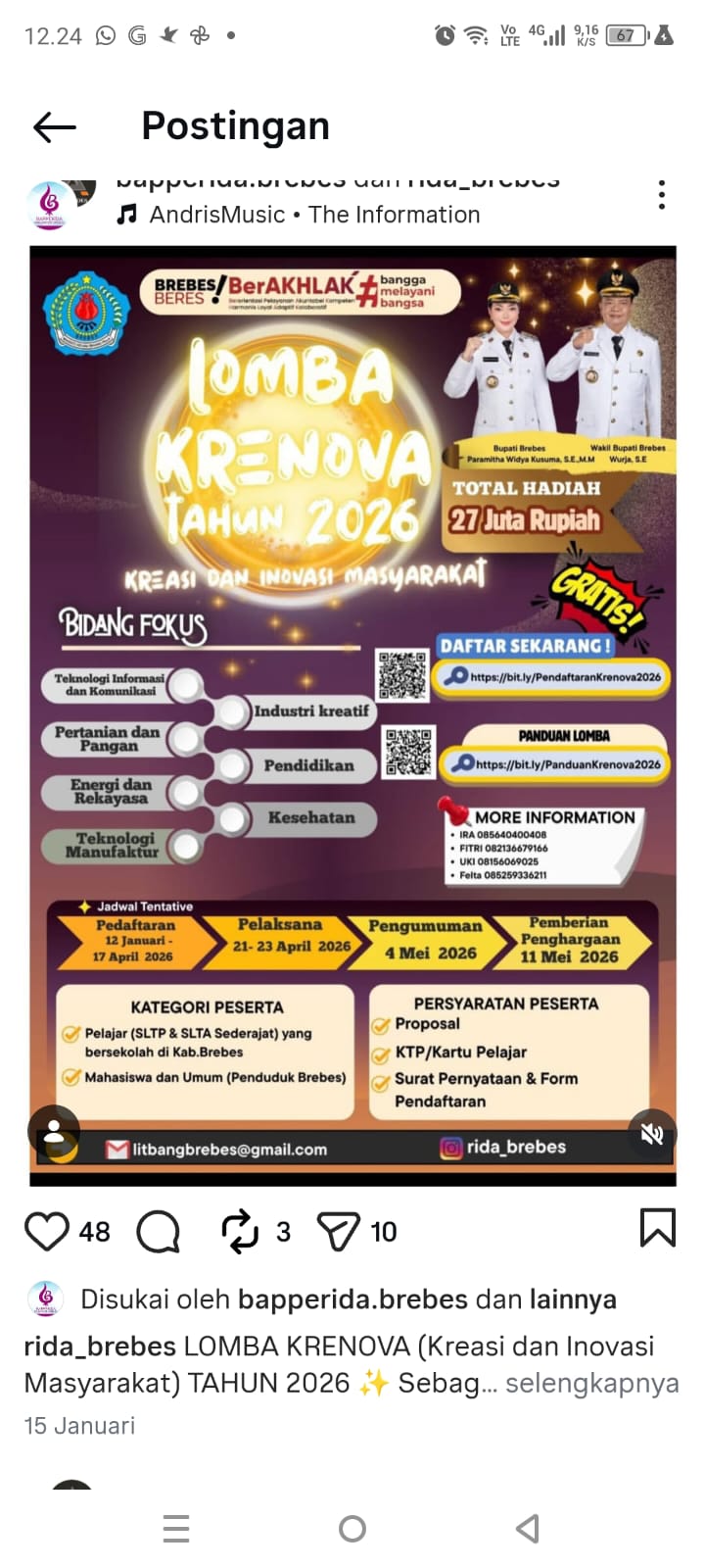 "Alhamdulillah kami dapat juara 2 dalam ajang AHM Best Student (AHMBS) Regional Jateng-DIY 2025 yang digelar Astra Honda Motor secara daring, 11-23 September lalu. Juara 1 nya kalau tidak salah dari Jogja," ujarnya.